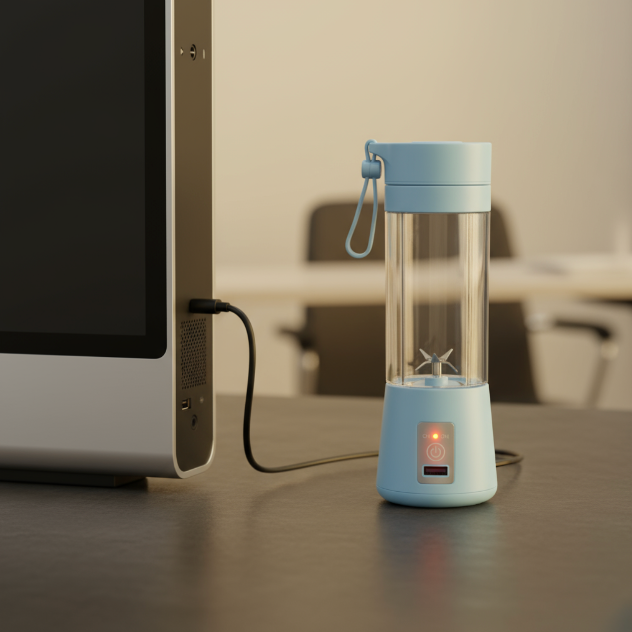 El mecanismo solo activa el motor cuando la tapa está correctamente puesta, evitando accidentes. - Presiona para activar
